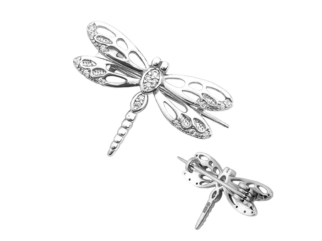 MINET Stříbrná brož VÁŽKA s bílými zirkony