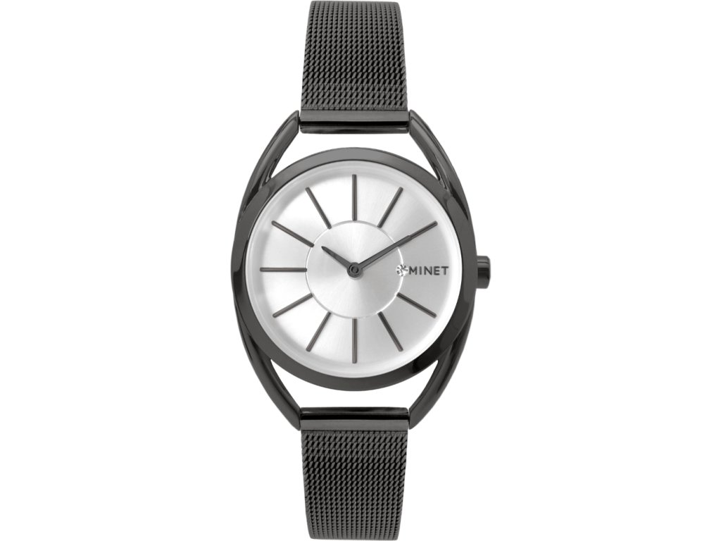 Elegantní hodinky české značky MINET se stříbrným číselníkem a moderním ocelovým řemínkem milánského typu v černé barvě. Vyměnitelný řemínek se snadným systémem zkracování se přizpůsobí obvodu ruky. Hodinky jsou vyrobeny z hypoalergenní nerezové oceli.• kvalitní materiály