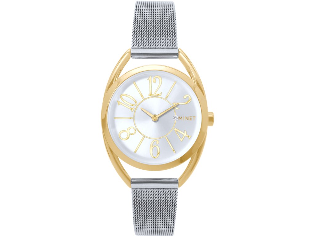 MINET Stříbrno-zlaté dámské hodinky s čísly ICON Bicolor