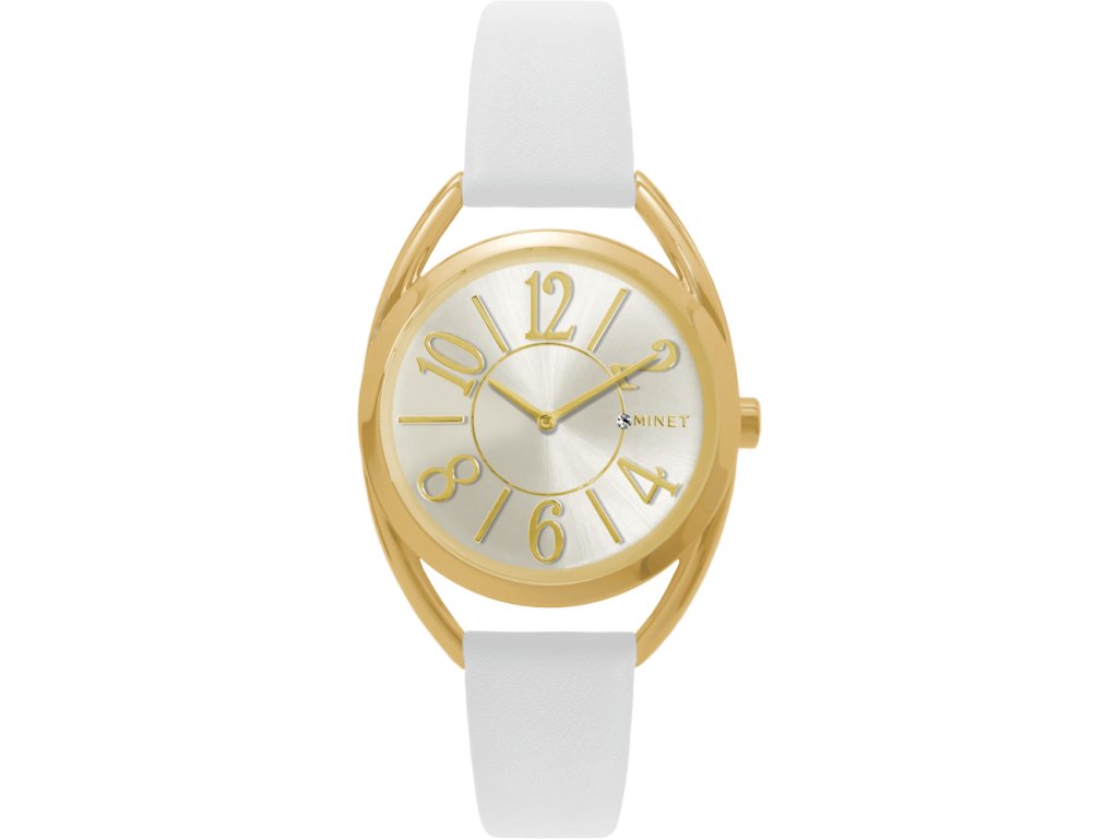 MINET Bílo-zlaté dámské hodinky s čísly ICON WHITE CHARM
