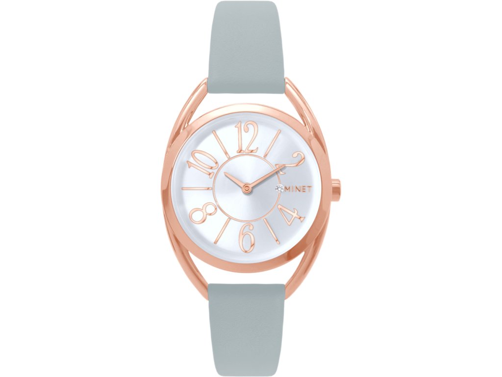 MINET Rose gold dámské hodinky s čísly ICON PINK se šedým koženým řemínkem