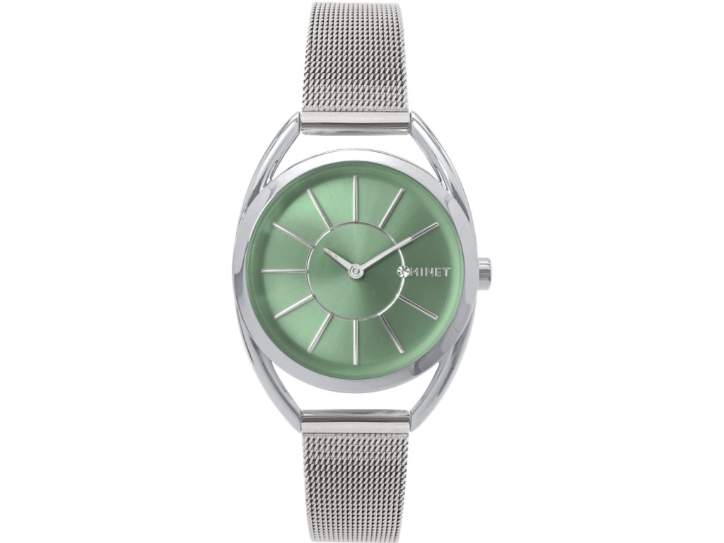 Elegantní hodinky české značky MINET se zeleným číselníkem a moderním ocelovým řemínkem milánského typu ve stříbrné barvě. Vyměnitelný řemínek se snadným systémem zkracování se přizpůsobí obvodu ruky. Hodinky jsou vyrobeny z hypoalergenní nerezové oceli.• kvalitní materiály