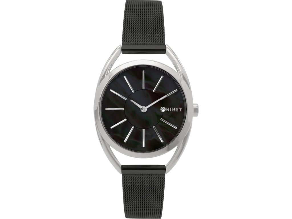MINET Stříbrno-černé dámské hodinky ICON BLACK PEARL MESH