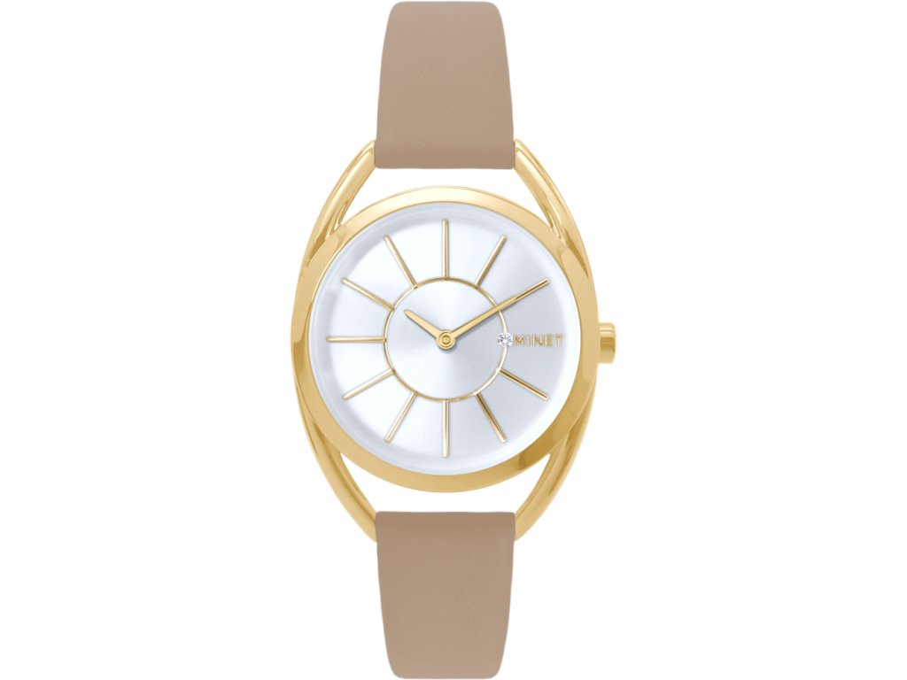 MINET Stříbrno-zlaté dámské hodinky ICON GOLD s béžovým koženým řemínkem