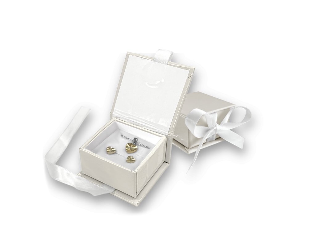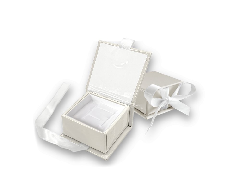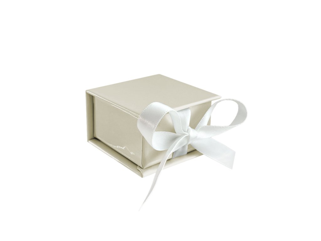 MINET Béžová magnetická krabička na šperky s bílou stuhou - 5 x 5 x 3 cm
