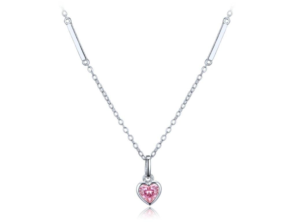 MINET Decentní stříbrný náhrdelník srdce s růžovým zirkonem