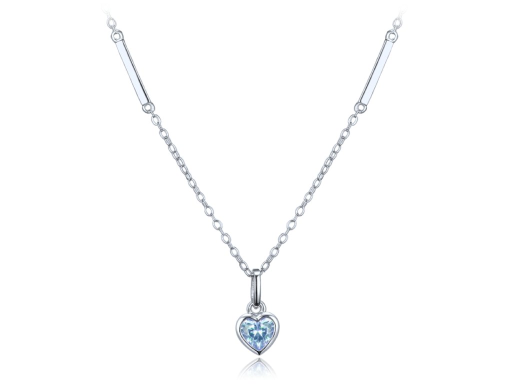 MINET Decentní stříbrný náhrdelník srdce se světle modrým zirkonem