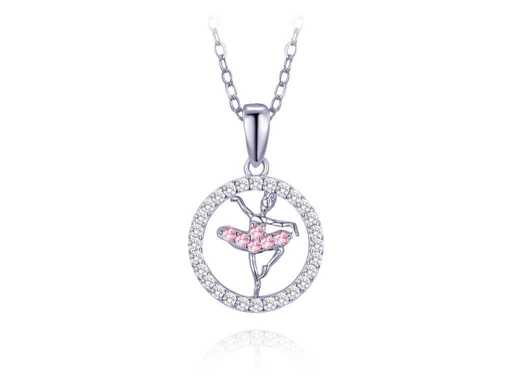 MINET Dětský stříbrný náhrdelník baletka s růžovými zirkony