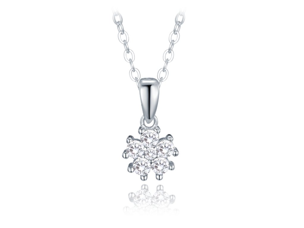 MINET Dětský stříbrný náhrdelník kytička s bílými zirkony