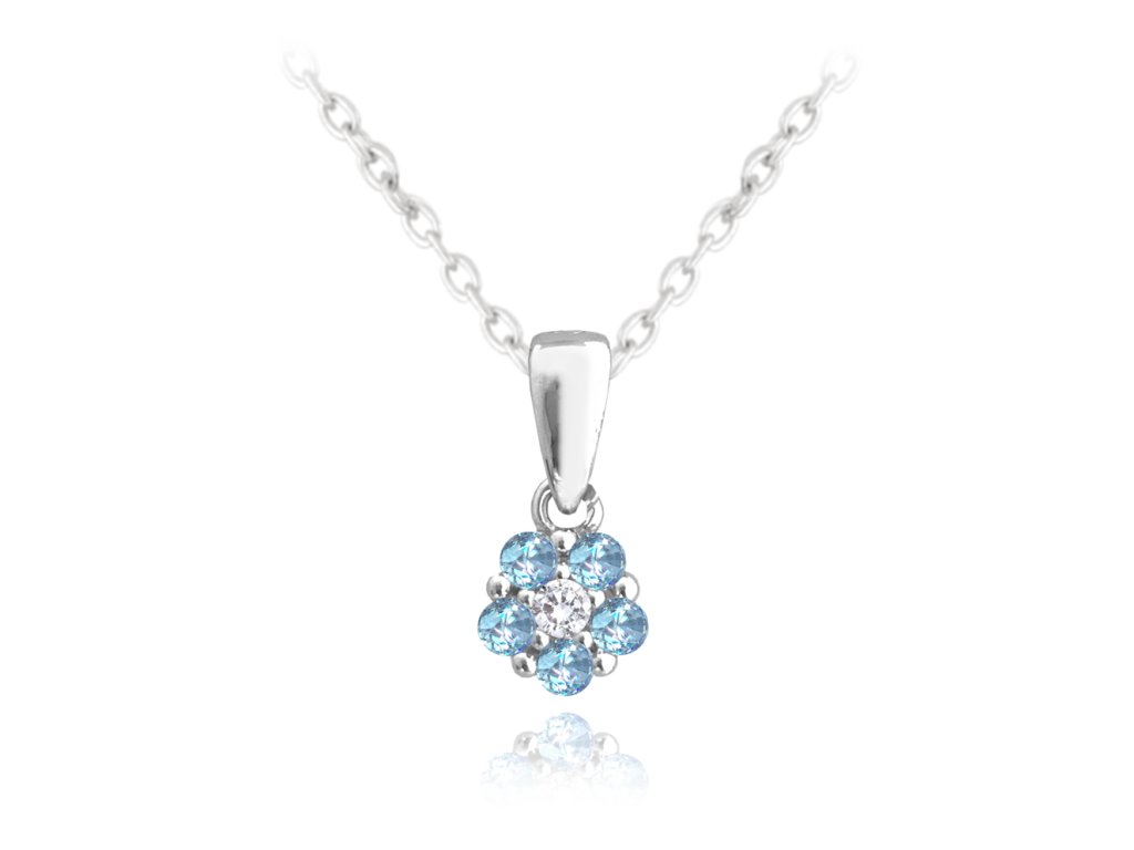MINET Dětský stříbrný náhrdelník KYTIČKA se světle modrými zirkony