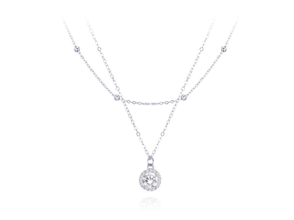 MINET Dvojitý stříbrný náhrdelník s bílými zirkony