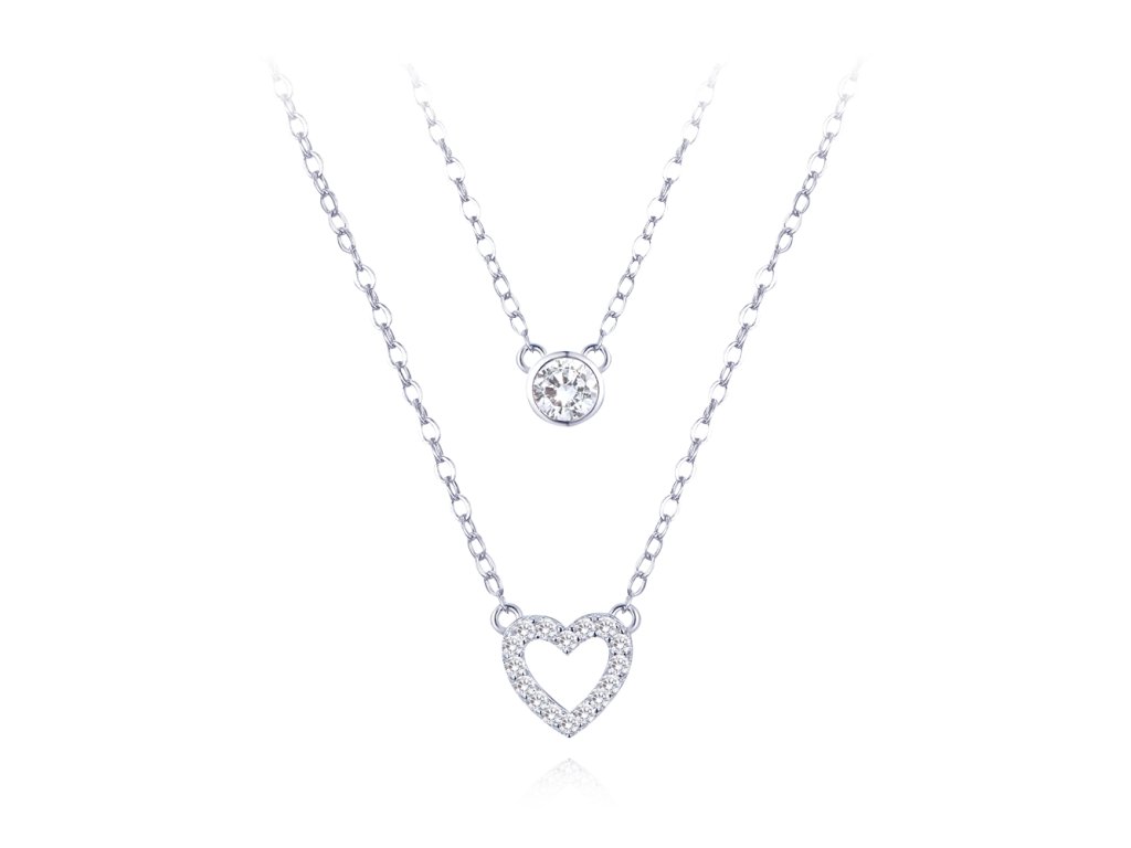 MINET Dvojitý stříbrný náhrdelník se srdcem a bílými zirkony