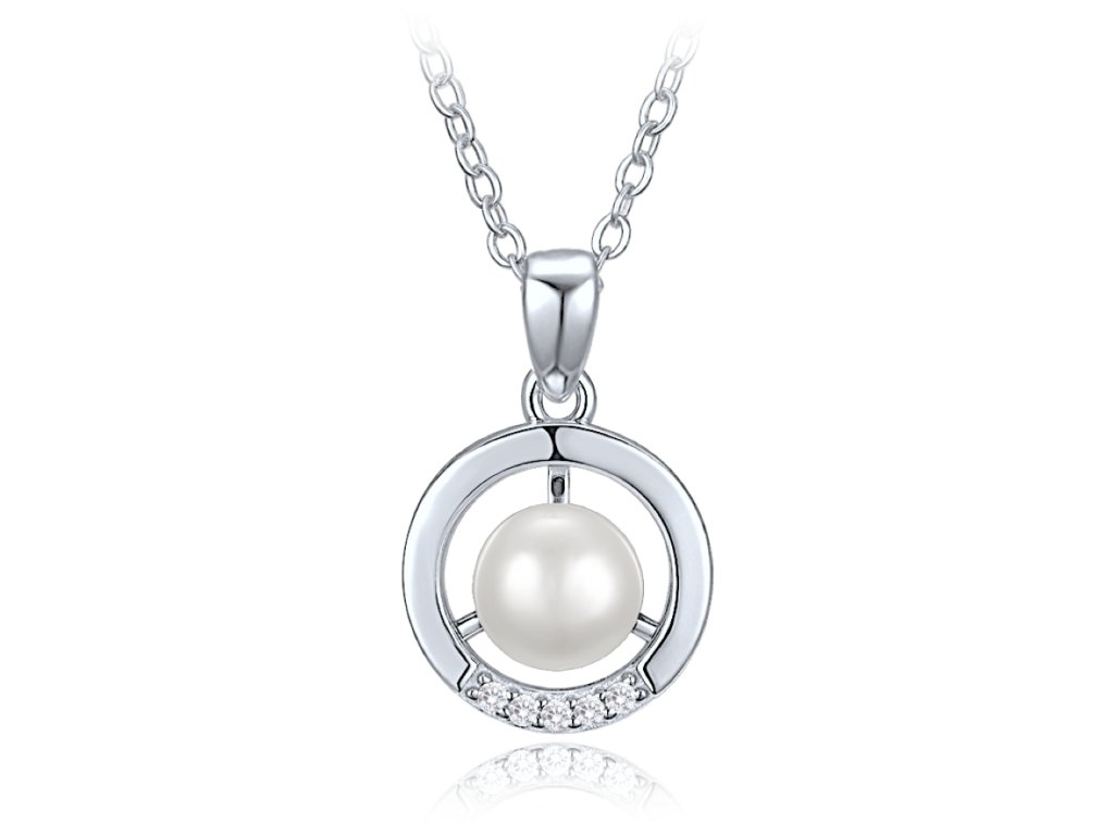 MINET Elegantní stříbrný náhrdelník kroužek s perlou a zirkonem