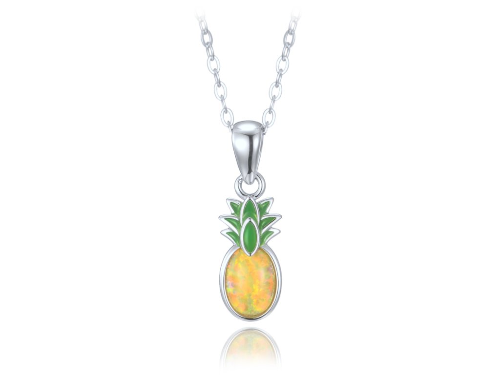 MINET Letní stříbrný náhrdelník ananas se žlutým opálem