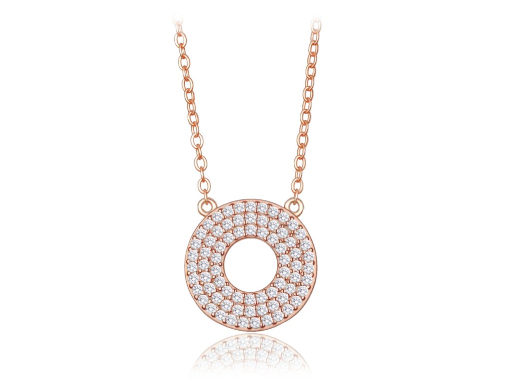 MINET Luxusní rose gold stříbrný náhrdelník kroužek s bílými zirkony