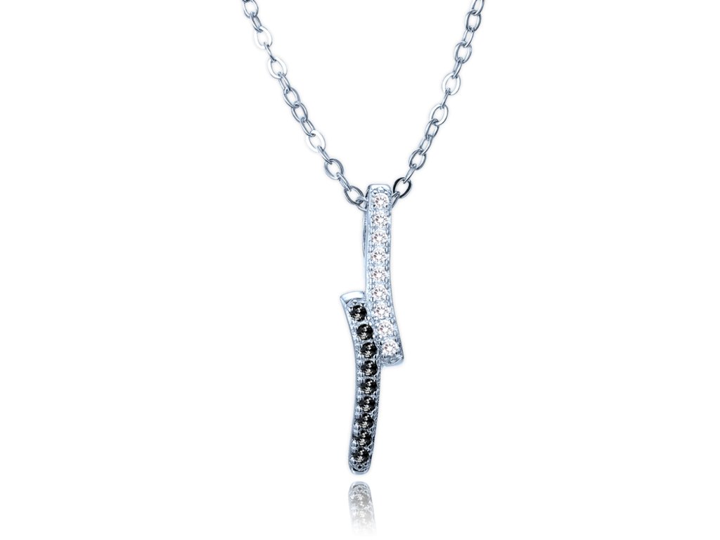 MINET Luxusní stříbrný náhrdelník s bílými a černými zirkony