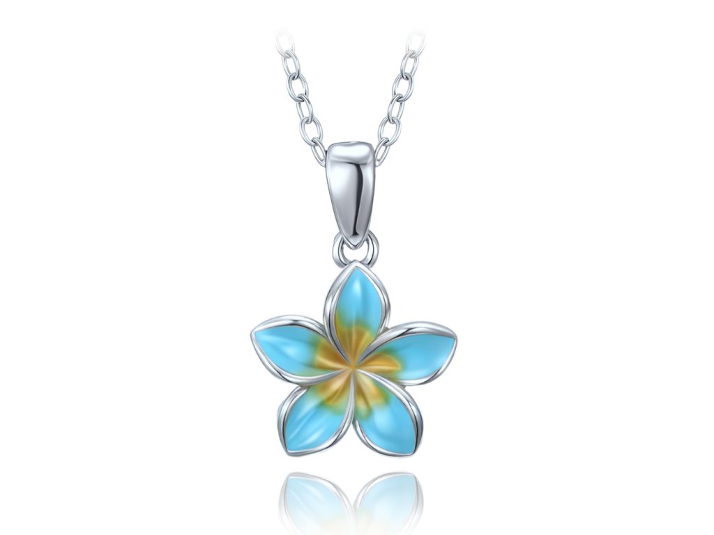 MINET Moderní stříbrný náhrdelník modrá kytička