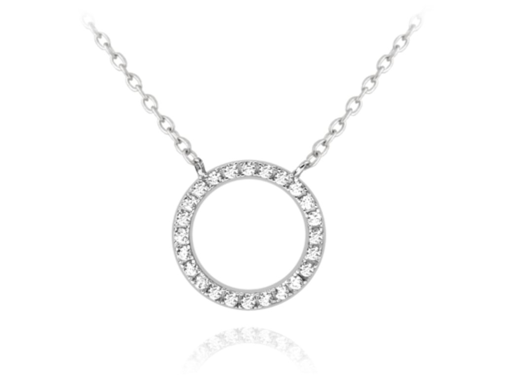 MINET Stříbrný náhrdelník KROUŽEK s bílými zirkony