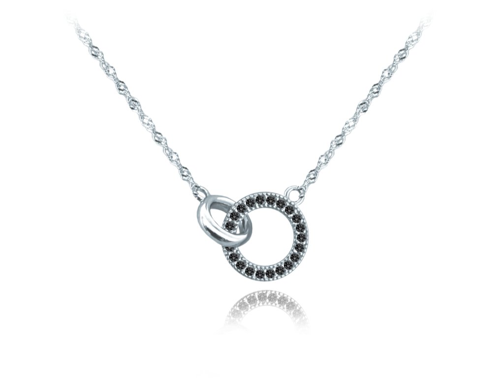 MINET Stříbrný náhrdelník KROUŽEK s černými zirkony