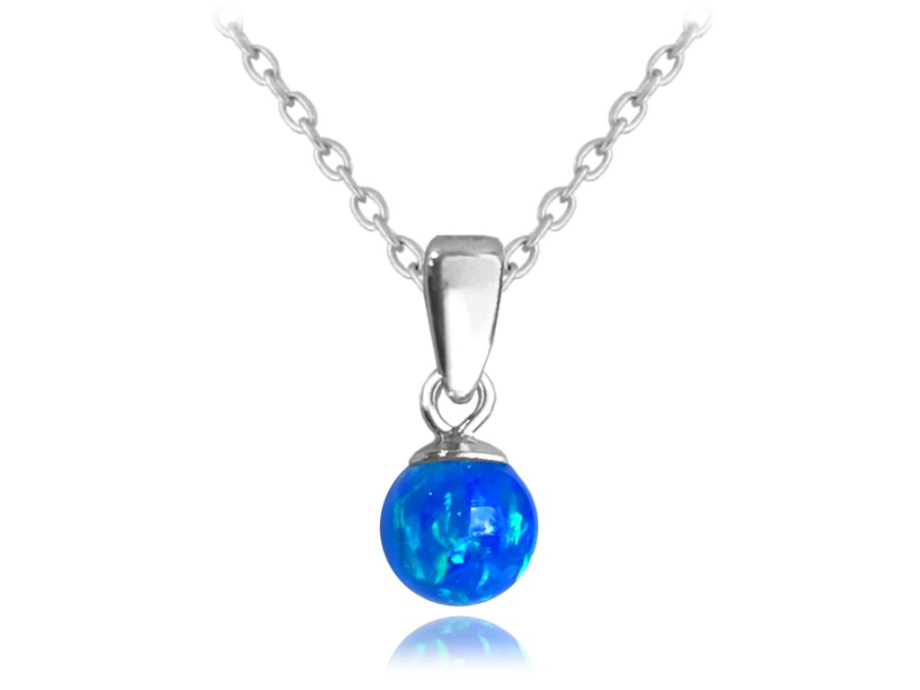 MINET Stříbrný náhrdelník KULIČKA s tmavě modrým opálkem