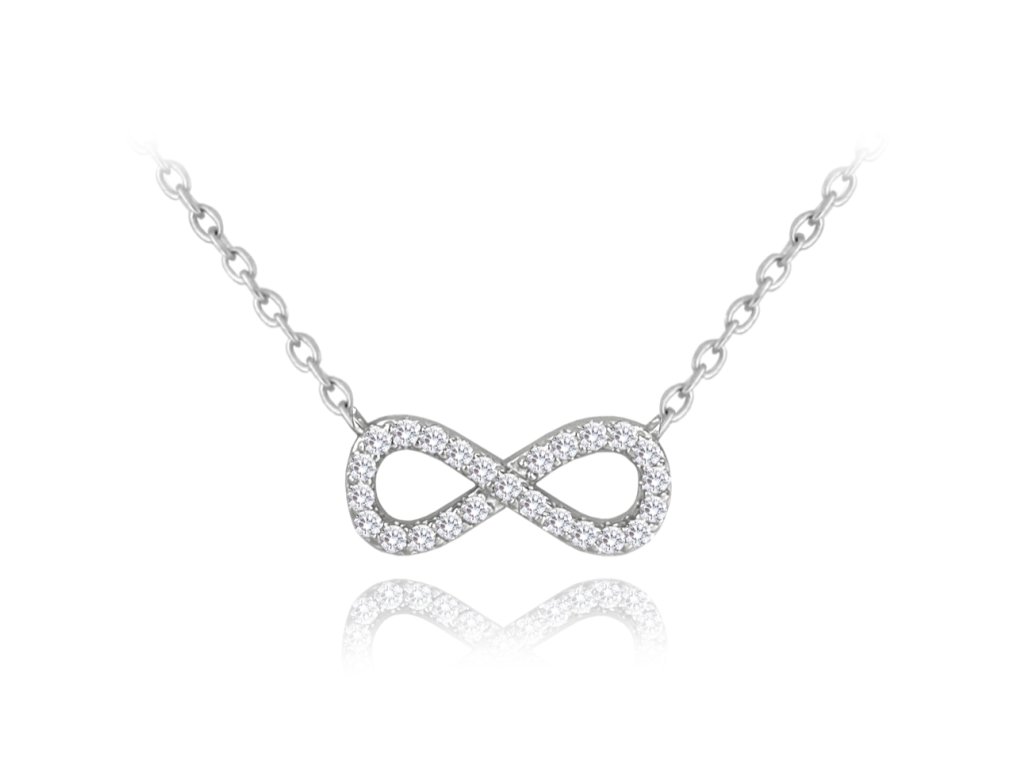 MINET Stříbrný náhrdelník NEKONEČNO s bílými zirkony
