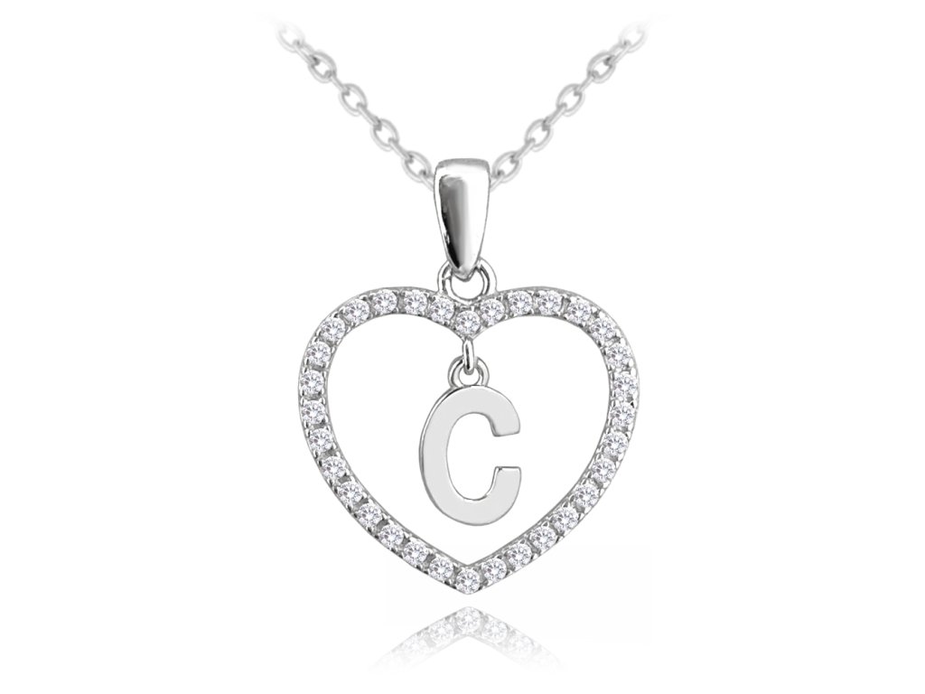 MINET Stříbrný náhrdelník písmeno v srdíčku "C" se zirkony