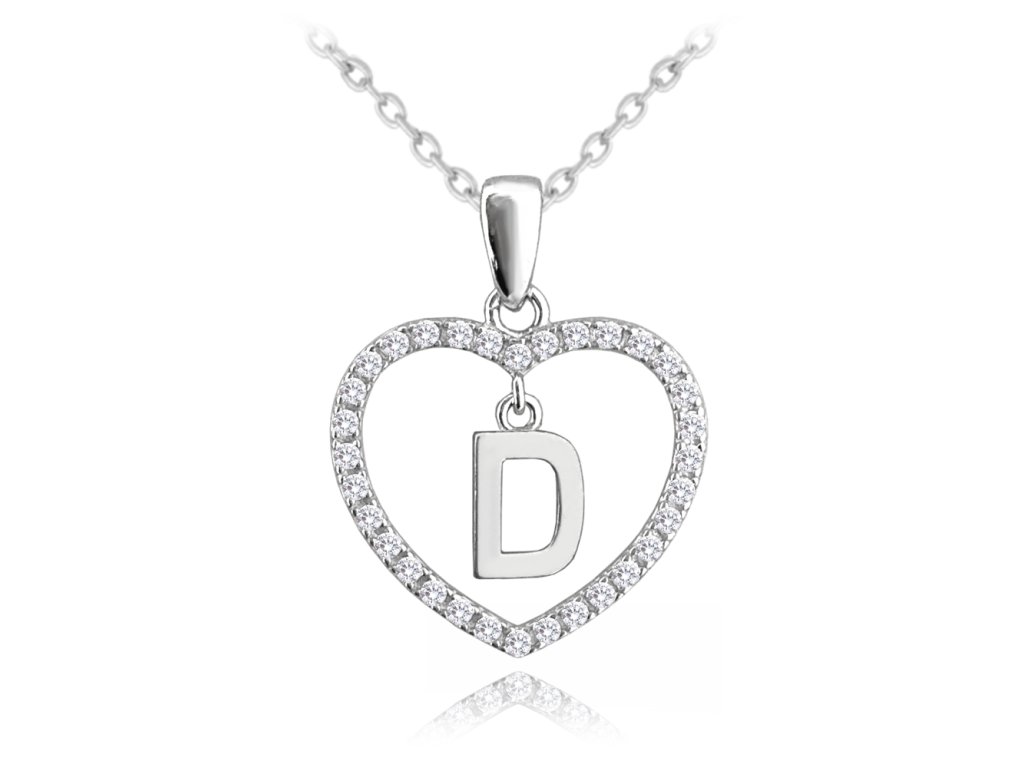 MINET Stříbrný náhrdelník písmeno v srdíčku "D" se zirkony