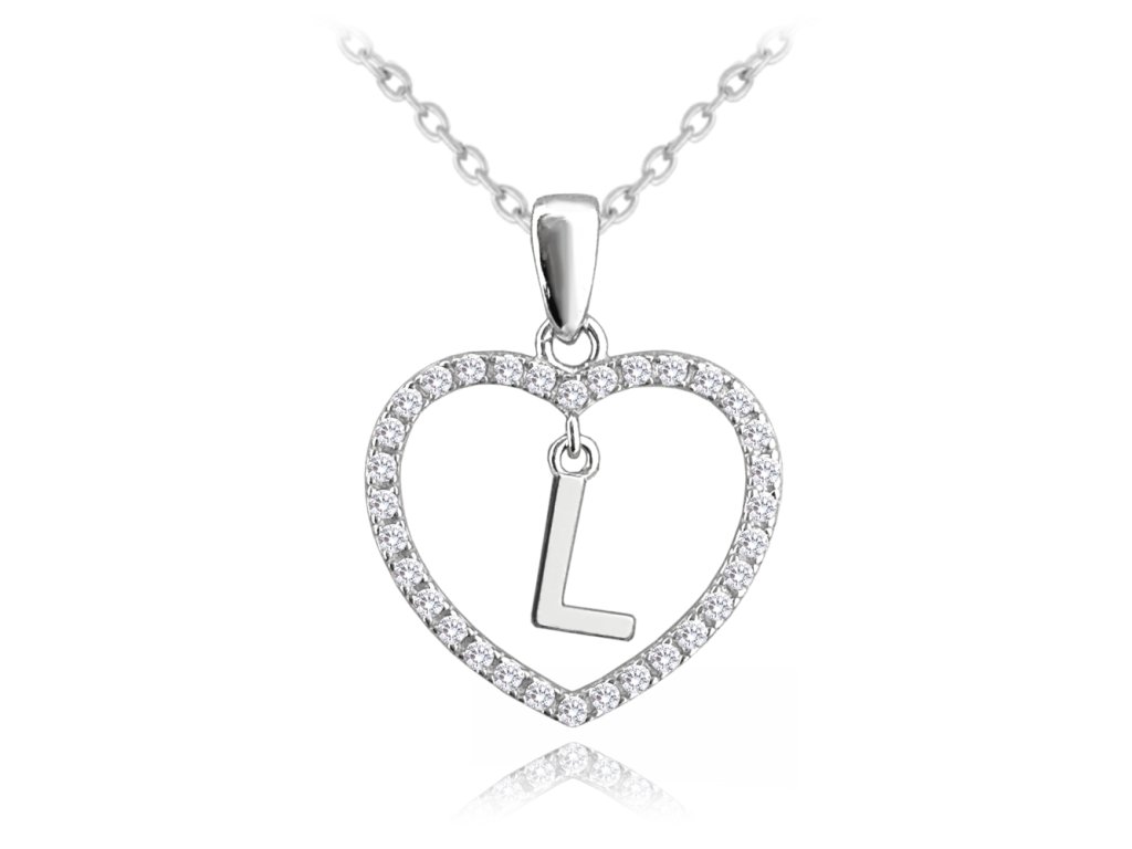 MINET Stříbrný náhrdelník písmeno v srdíčku "L" se zirkony