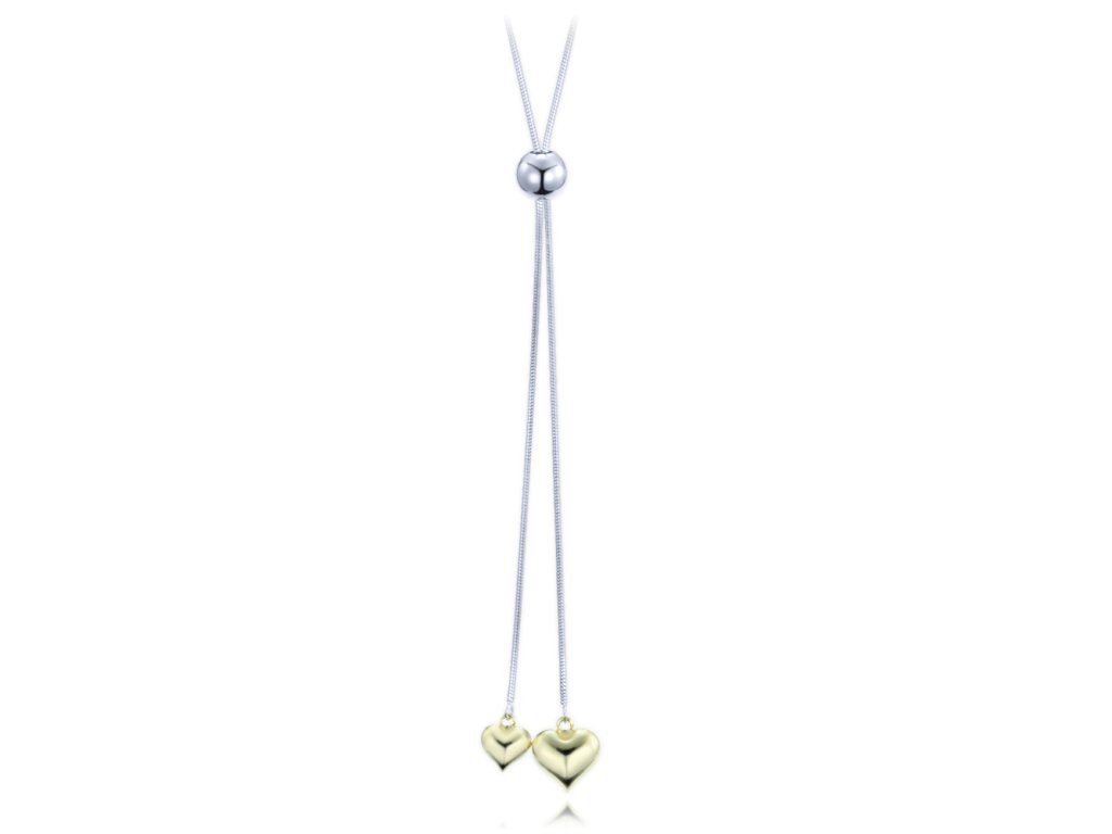MINET Stříbrný náhrdelník s pozlacenými srdíčky a stahovacím zapínáním Ag 925/1000 10,45g