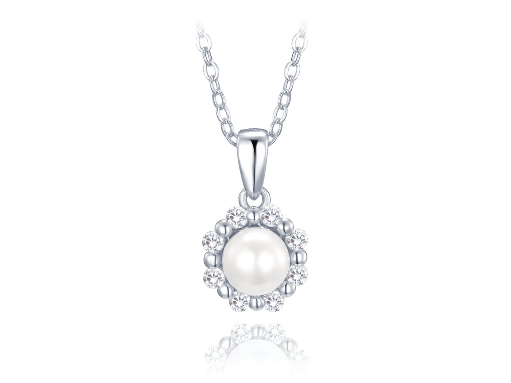 MINET Stříbrný náhrdelník s přírodní perlou a bílými zirkony