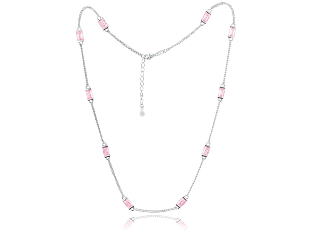 MINET Stříbrný náhrdelník s růžovými zirkony Ag 925/1000 10,75g