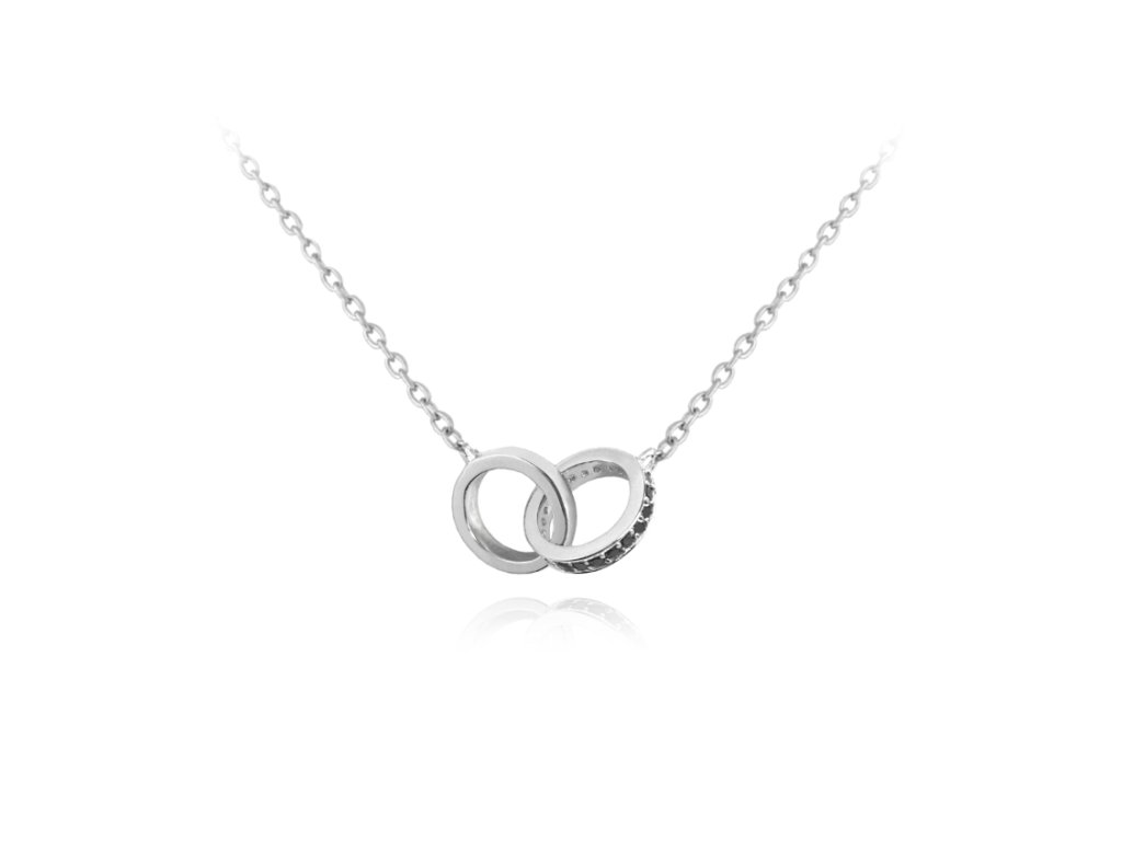 MINET Stříbrný náhrdelník spojené kroužky s černými zirkony