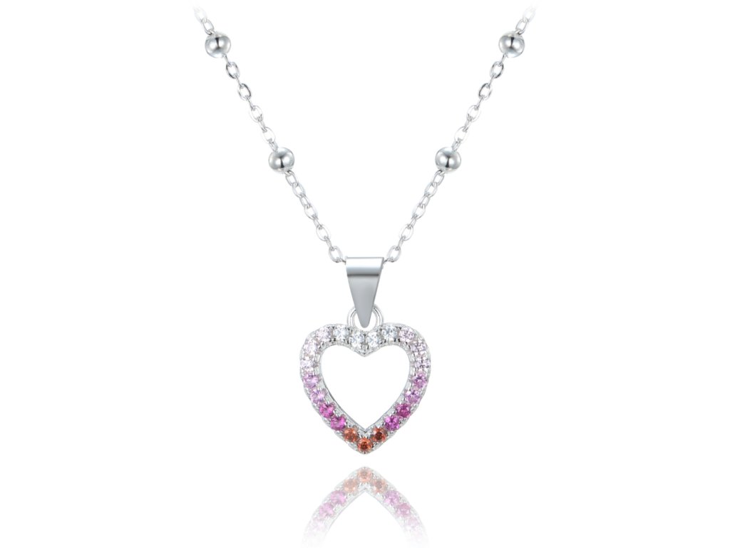 MINET Stříbrný náhrdelník srdce se zirkony v červených odstínech