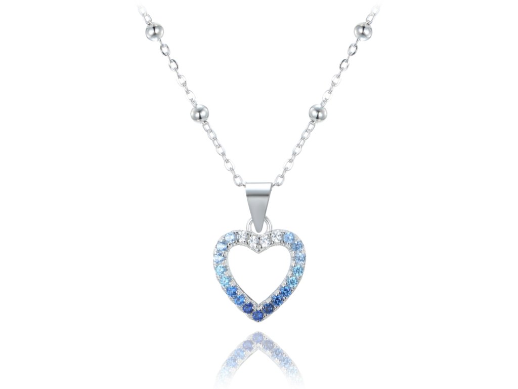 MINET Stříbrný náhrdelník srdce se zirkony v modrých odstínech