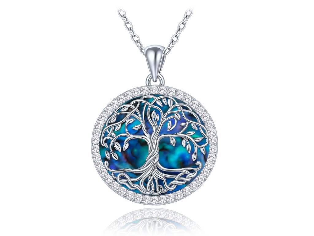 MINET Stříbrný náhrdelník strom života s bílými zirkony a perletí