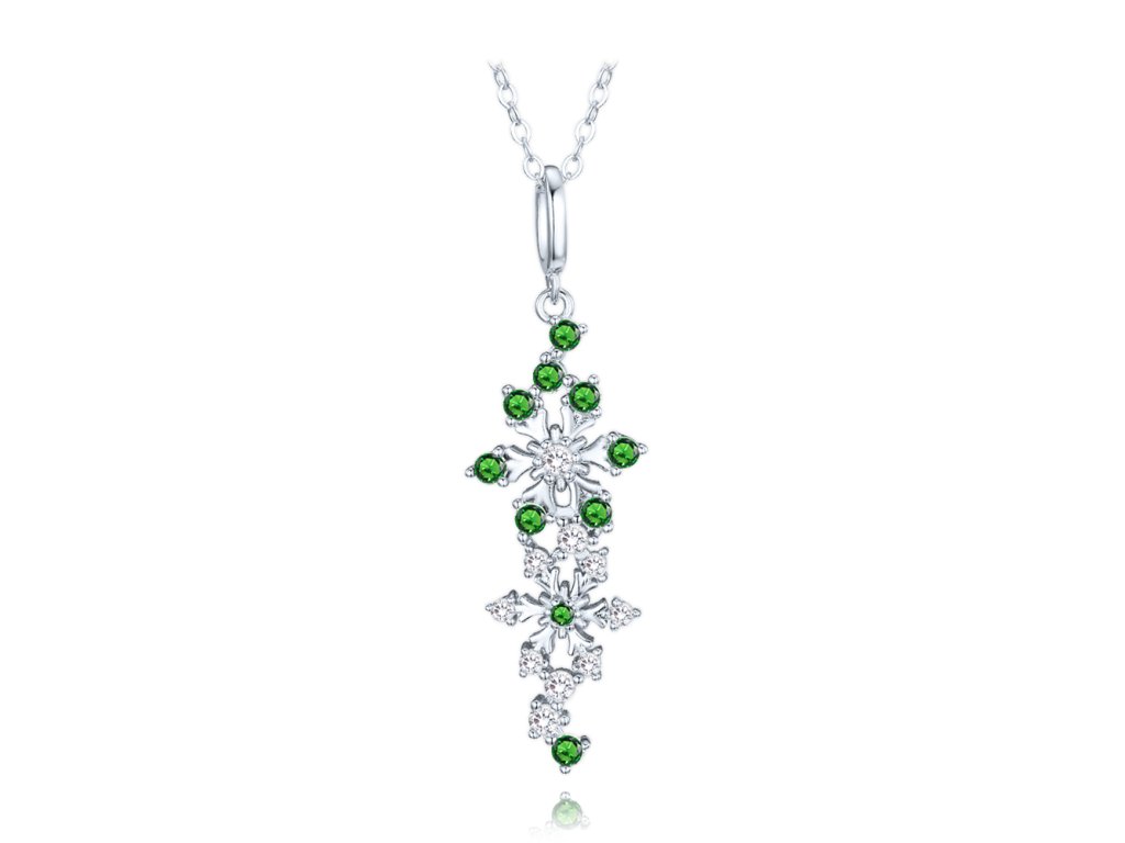 MINET Stříbrný náhrdelník vločky s bílými a zelenými zirkony