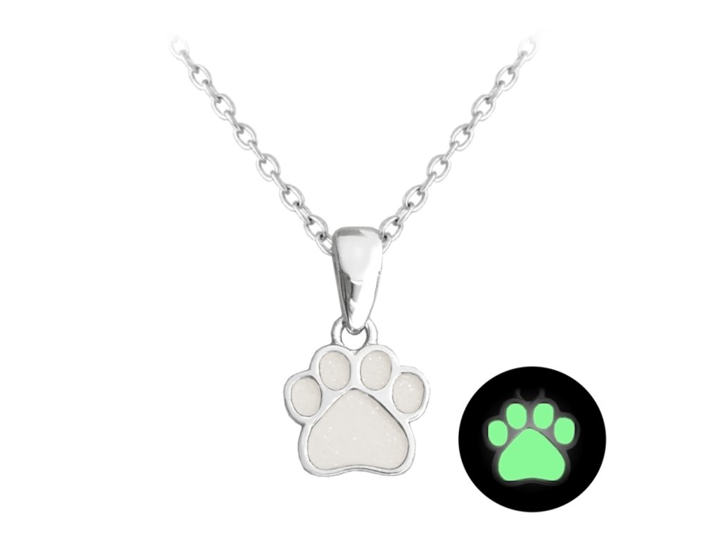 Stříbrné tlapky, které navíc SVÍTÍ VE TMĚ? Ne, neděláme si srandu.Vystavte na chvíli světlu, poté zhasněte a uvidíte, jak se barevné části jasně rozzáří. Šperk Vám tak bude tvořit zajímavý doplněk i v noci a určitě nenechá Vaše okolí bez povšimnutí.