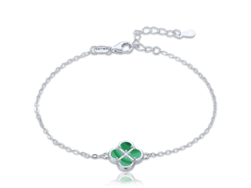 MINET Stříbrný náramek čtyřlístek s malachitem