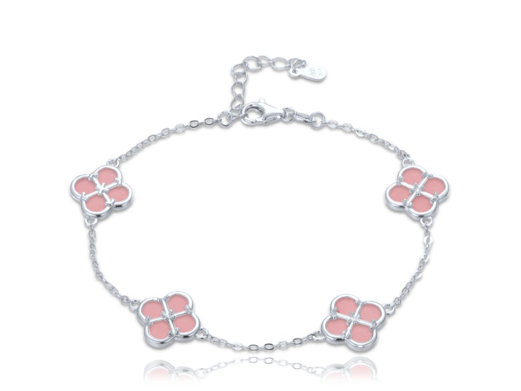 MINET Stříbrný náramek čtyřlístky s jadeity
