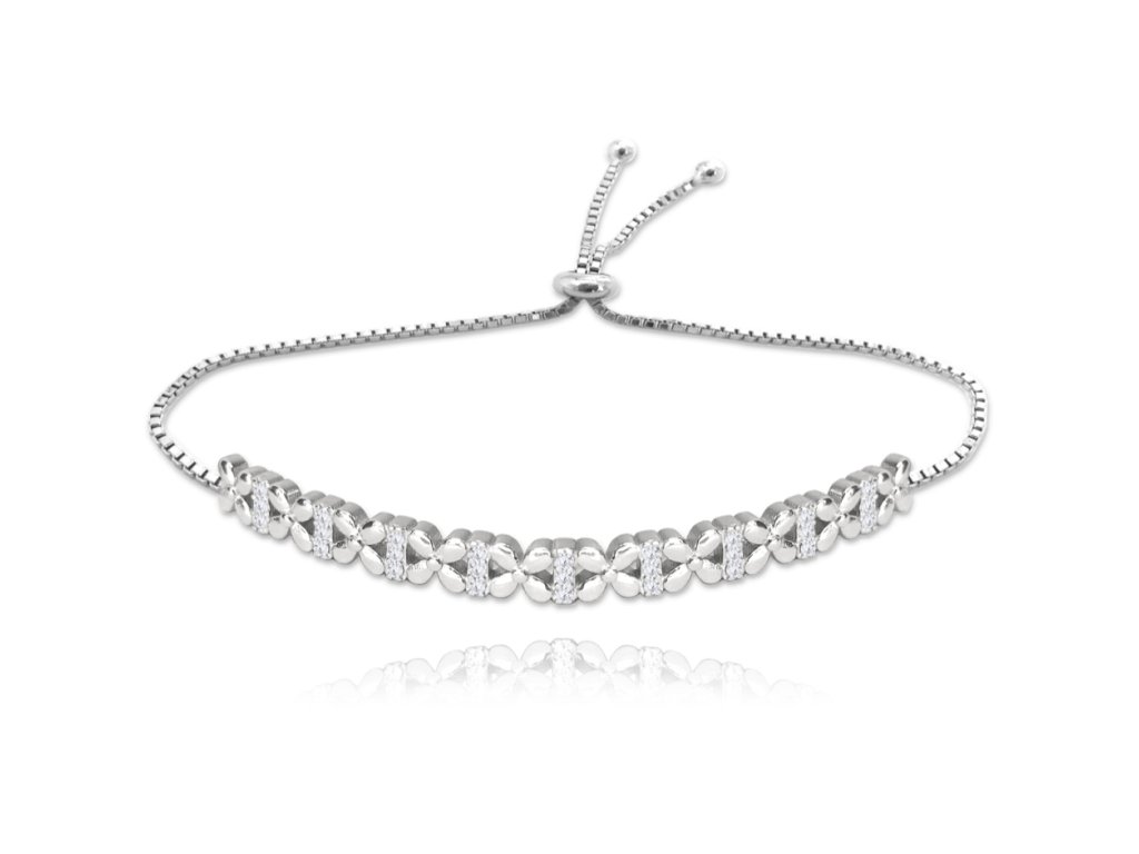MINET Stříbrný náramek KYTIČKY s bílými zirkony a stahovacím zapínáním