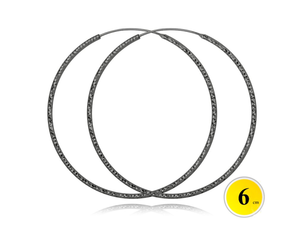 MINET Černé broušené stříbrné náušnice KRUHY 6 cm