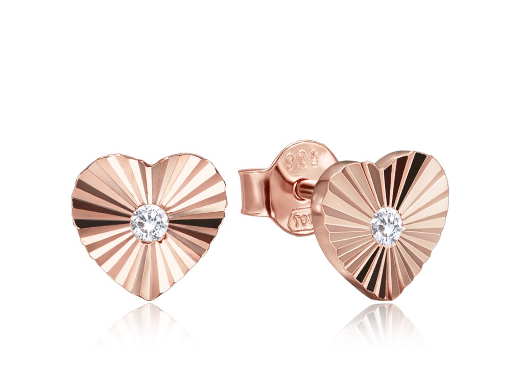 MINET Decentní rosegold stříbrné náušnice srdíčka se zirkony