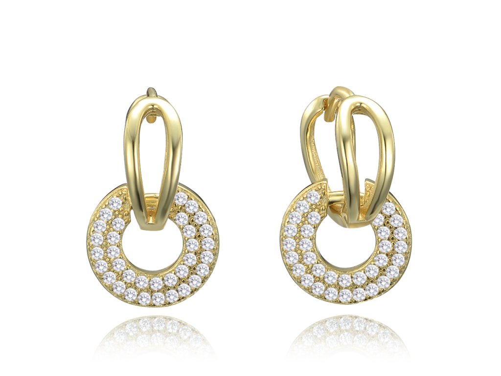 MINET Luxusní pozlacené stříbrné náušnice dvojité kroužky s bílými zirkony