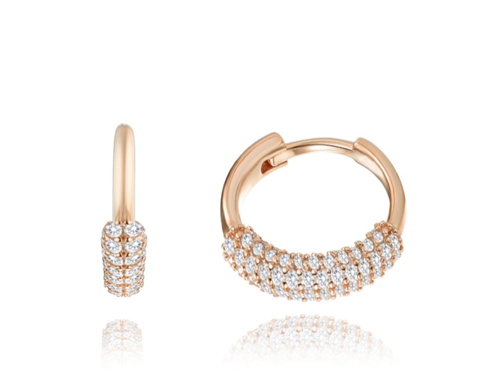 MINET Luxusní rose gold stříbrné náušnice s bílými zirkony