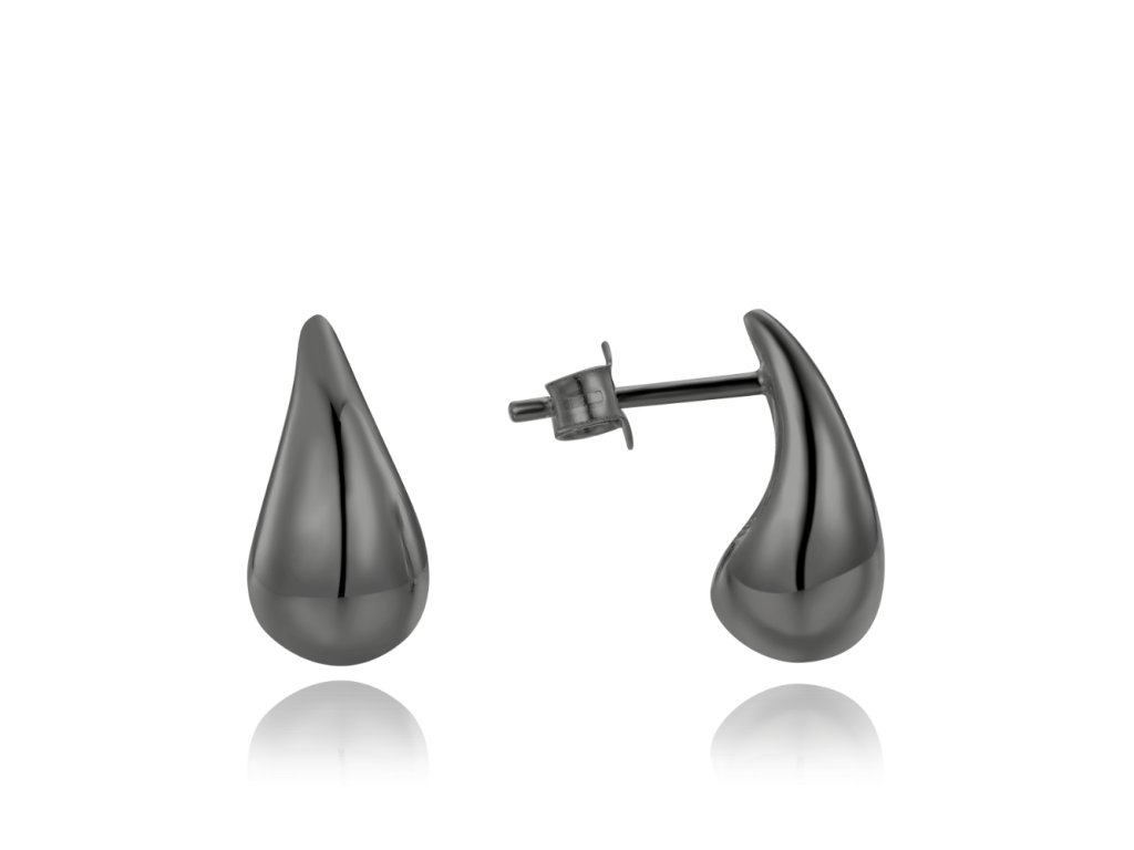 MINET Moderní černé stříbrné náušnice kapky
