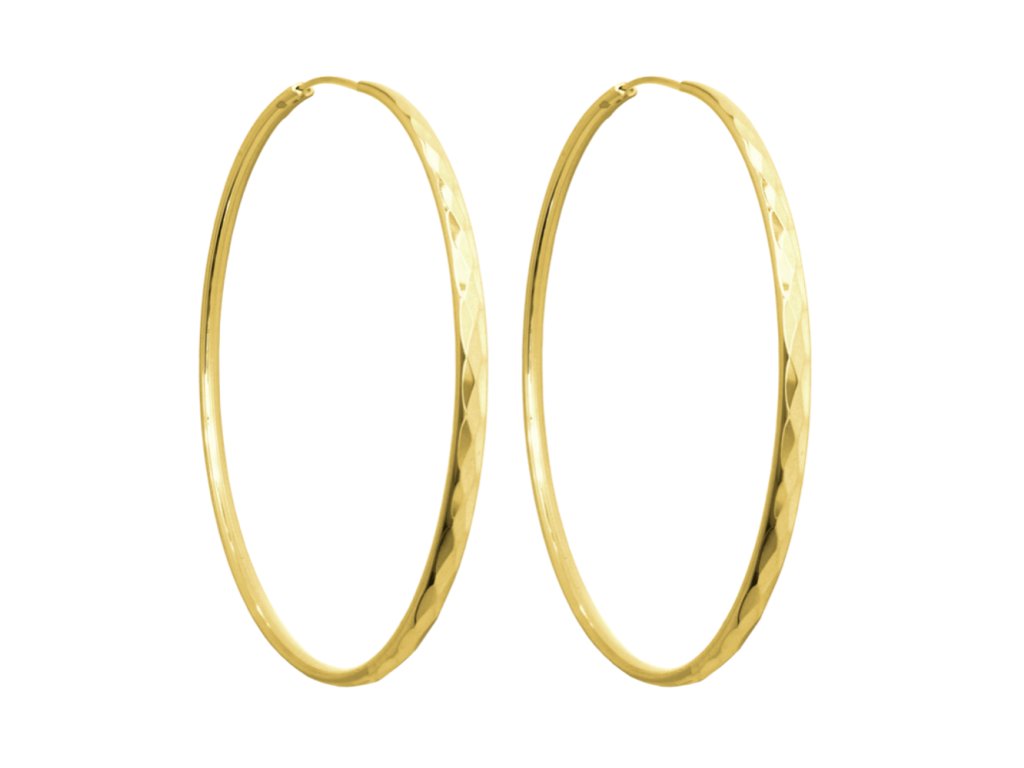 MINET Pozlacené broušené stříbrné náušnice KRUHY 5 cm