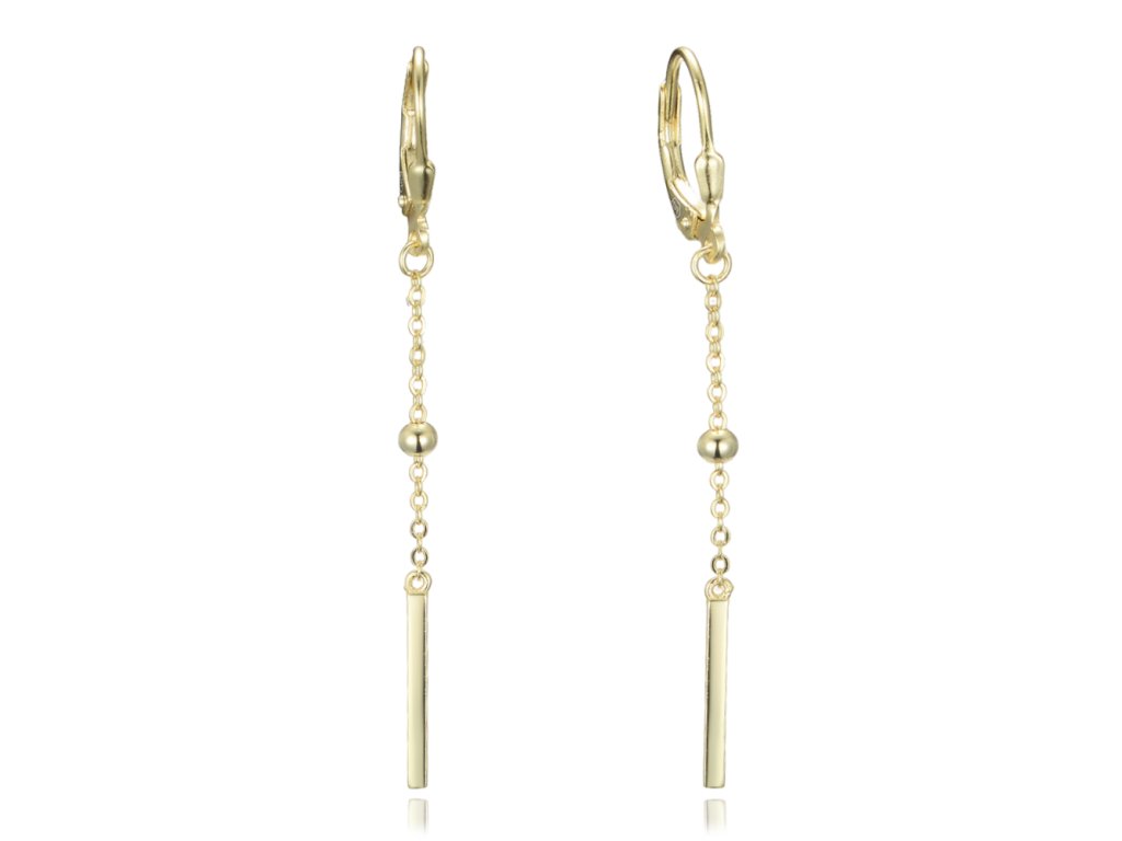 MINET Pozlacené řetízkové stříbrné visací náušnice s kuličkami a tyčkami