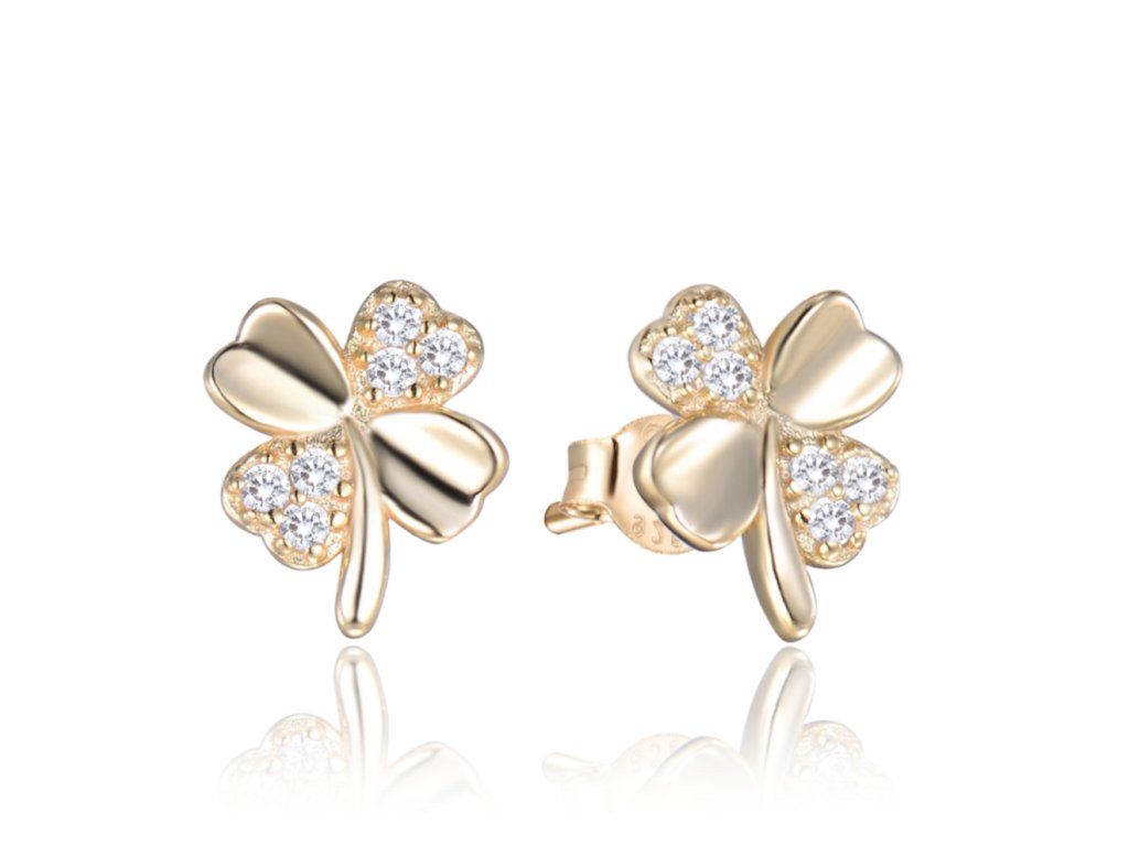 MINET Pozlacené stříbrné náušnice ČTYŘLÍSTKY s bílými zirkony