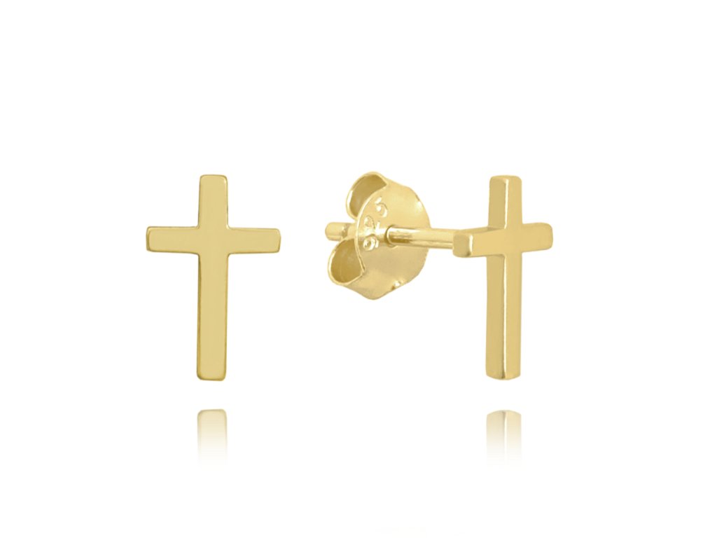 MINET Pozlacené stříbrné náušnice drobné KŘÍŽKY
