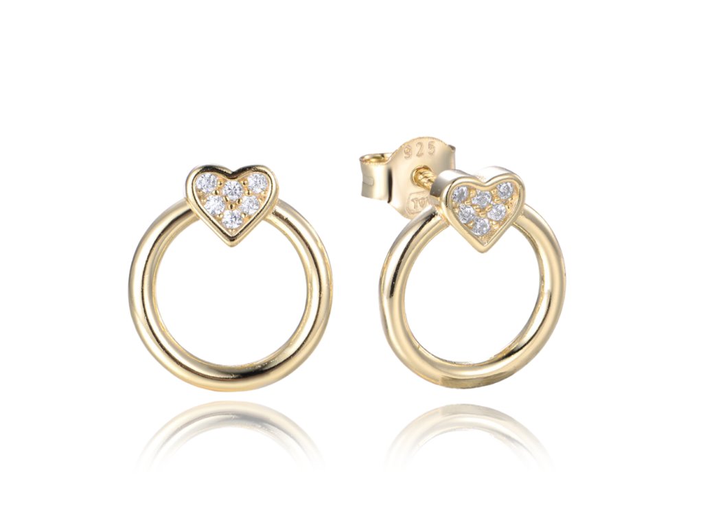 MINET Pozlacené stříbrné náušnice KROUŽKY se srdíčky